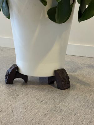 Dekorativa och funktionella kruktassar i gjutjärn som skonar trädäcket, stenen eller gräsmattan.