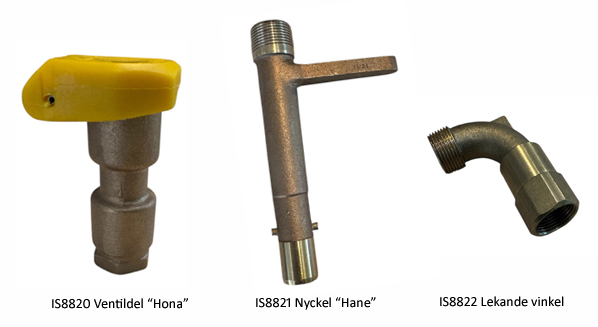 Öppnas och stängs med hjälpa av Nycklen (hanen) Svivlen gör så att slangen kan dras runt ventilen utan att vikas.